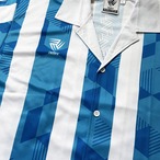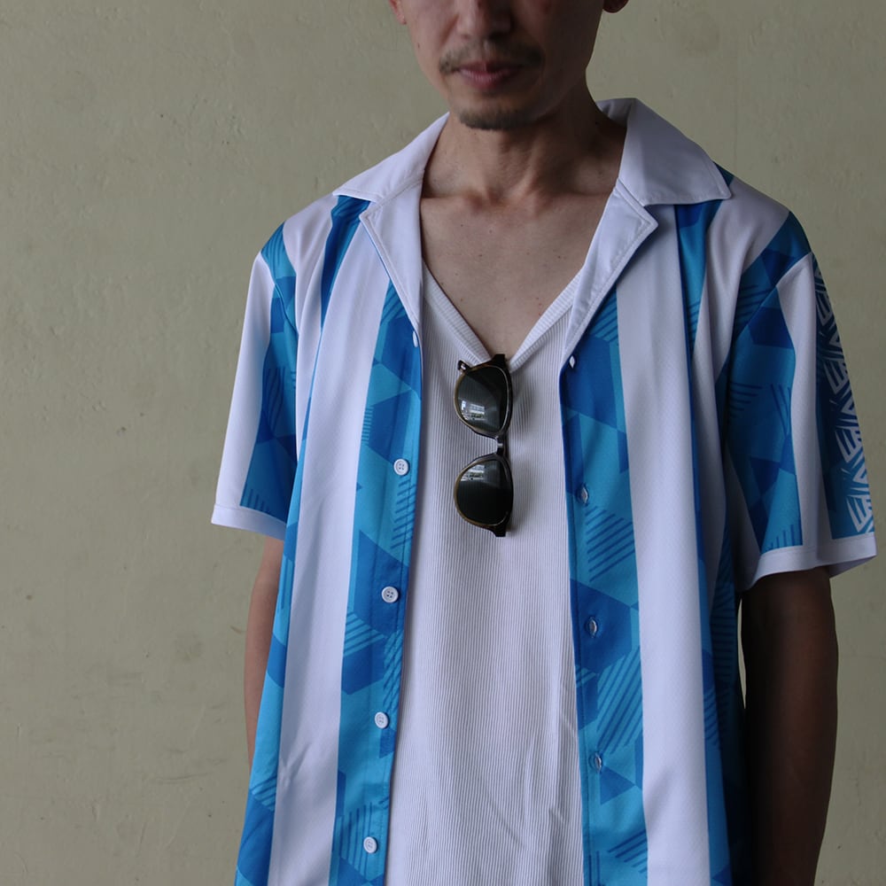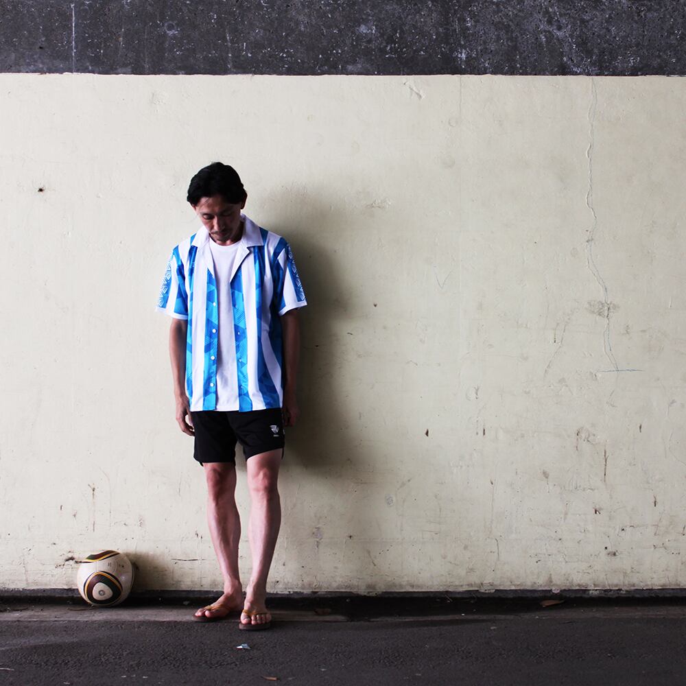 アルゼンチンのユニフォームをモチーフにしたシャツ <モデル着用> 179cm/痩せ型 Lサイズ着用 着用パンツ https://one8ty.thebase.in/items/65171200