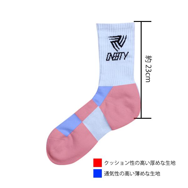 one8tyのNEWロゴを使った、ミドルソックス。 ショートソックスより少し長めなミドルソックスで短めのハーフパンツとの相性が抜群にカッコ良いです。 ツマサキ、カカトはクッション性を重視してやや厚めに、その他シューズに入る足部分は通気性を重視してややメッシュ素材になってます。