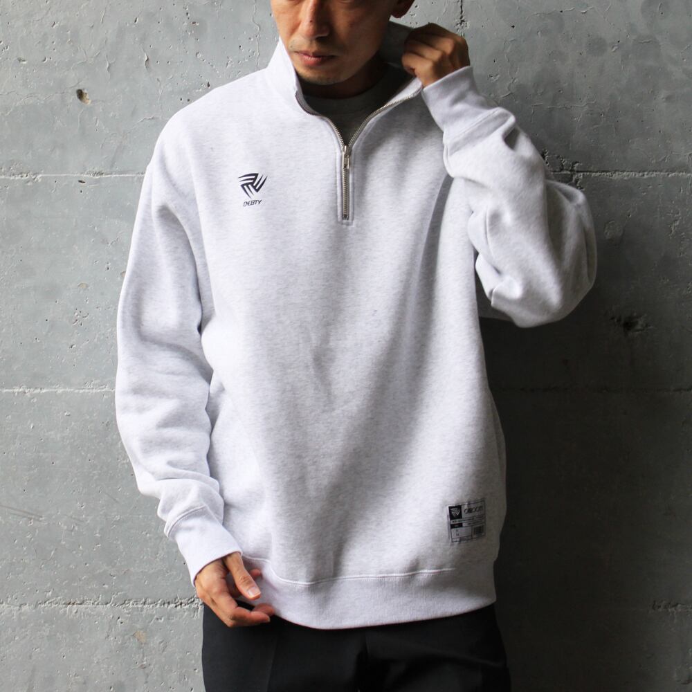 ルーズフィットシルエットのハーフジップスウェット 裏地は保温性と着心地の良さがある起毛素材 旬なアイテムで男性女性幅広く着こなせるユニセックスアイテムです。 <モデル> 178cm/痩せ型 XLサイズ/着用(オーバーサイズ感有り)